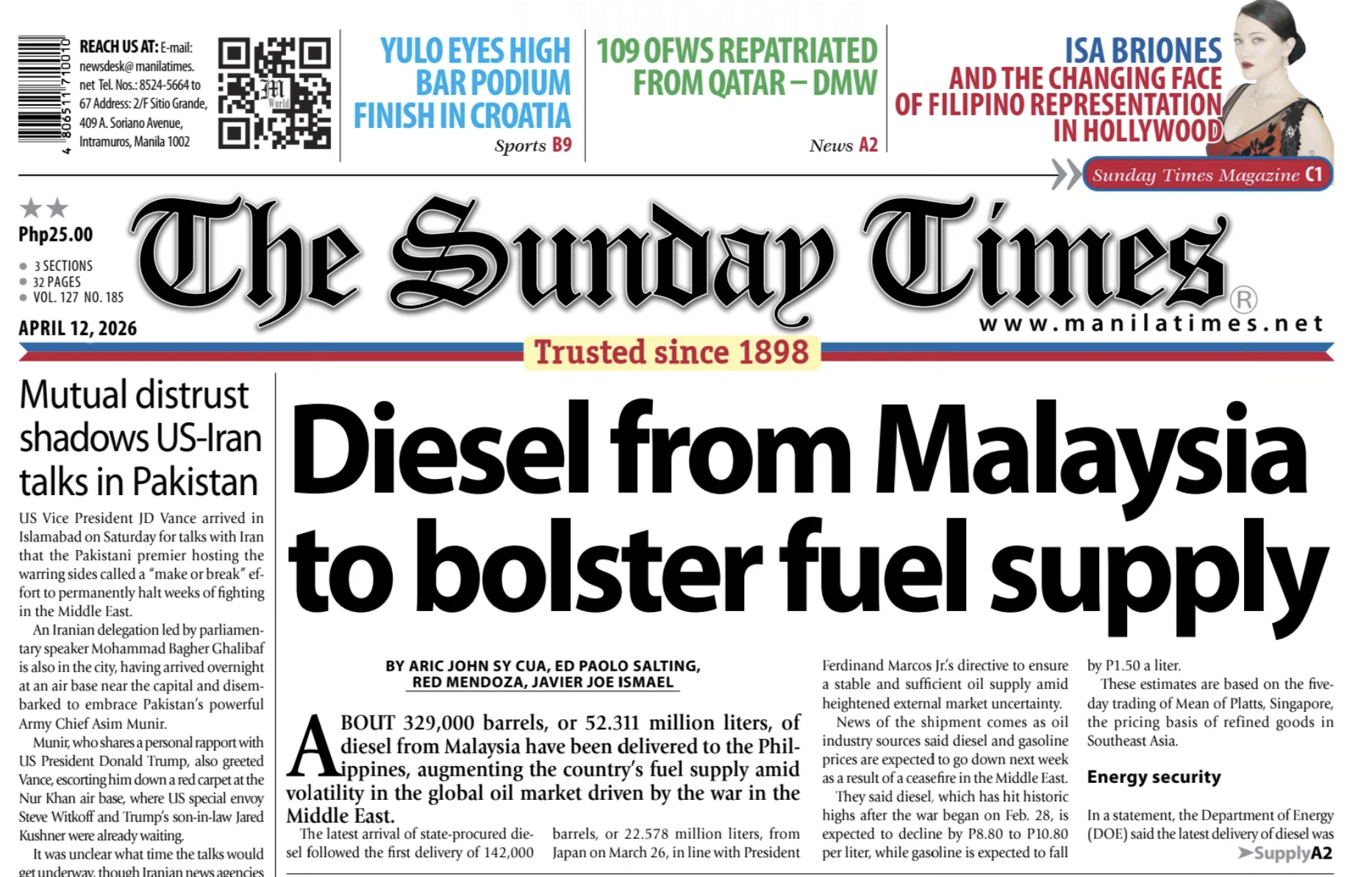 Jabatan Tenaga Filipina hari ini melaporkan ketibaan penghantaran kedua diesel dari Malaysia, namun, Petronas dan MTEN menafikan penglibatan mereka dalam laporan tersebut.